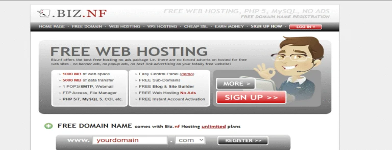 Despite the funny name, GoogieHost is a serious free hosting provider. It offers 1 GB SSD storage, unlimited bandwidth, free SSL, and even Cloudflare CDN integration for better speed and security. It’s ad-free and suitable for small business starter sites.